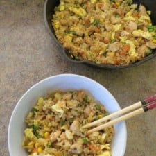 I use a cast – iron skillet to make the Chicken Fried Rice because I find that the rice doesn’t stick as much to the cast iron as it does to a regular stainless steel skillet.