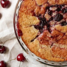 Cherries always equal summer. There’s nothing like fresh, sweet, ripe, juicy cherries. I look forward to them all year. If fresh cherries aren’t in season or available, using frozen cherries is my go-to for this easy cherry cobbler recipe.